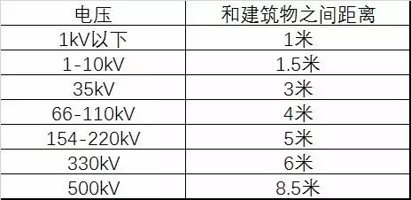 高壓電線路和建筑物之間的水平距離規(guī)定,和高壓電電壓有關(guān),扣除大風(fēng)天氣下造成的“風(fēng)偏”距離后,兩者間距請參考下表(來自《電力設(shè)施保護(hù)條例》):